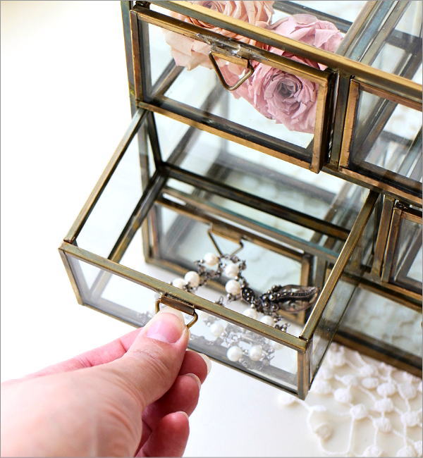 材質 ガラス アイアン 重量(kg) 2.02 生産国 インド ※引き出しにストッパーはついていません ※手作り品につき、わずかなガタつきや小さなガラスの欠け、小傷等はご容赦ください ※アイアンに真鍮風のペイントを施したアンティーク調デザインです 備考 ・北海道・沖縄・離島の送料は別途お問い合わせ下さい ・ディスプレイによる色の違いは予めご了承下さい ・手作り品の為僅かな寸法違いは予めご了承下さい |