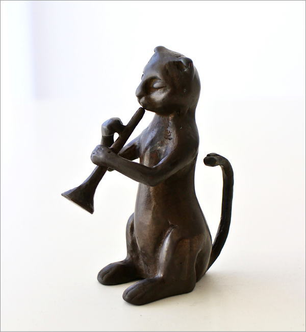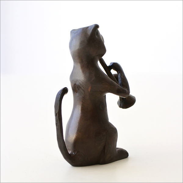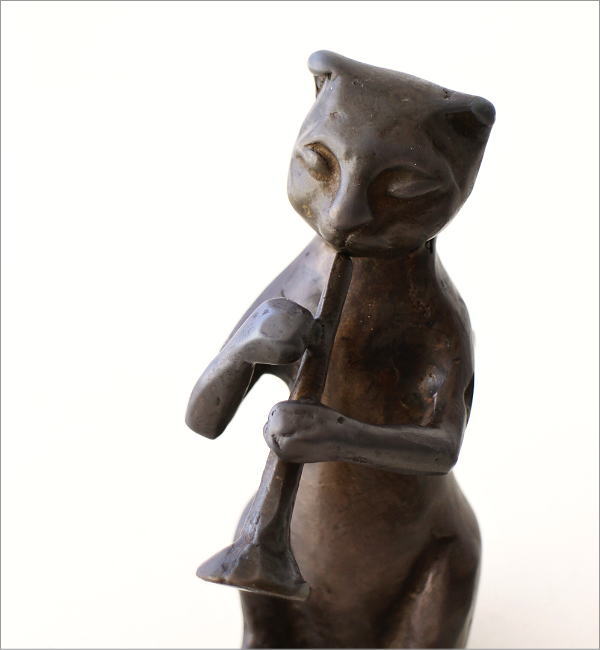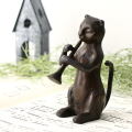 ブラスのトランペットを奏でるネコのオブジェ