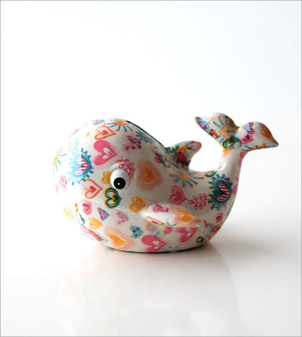 商品名 陶器のカラフル貯金箱 ハートクジラ 商品番号 toy4349 サイズ(表記はcmです)
