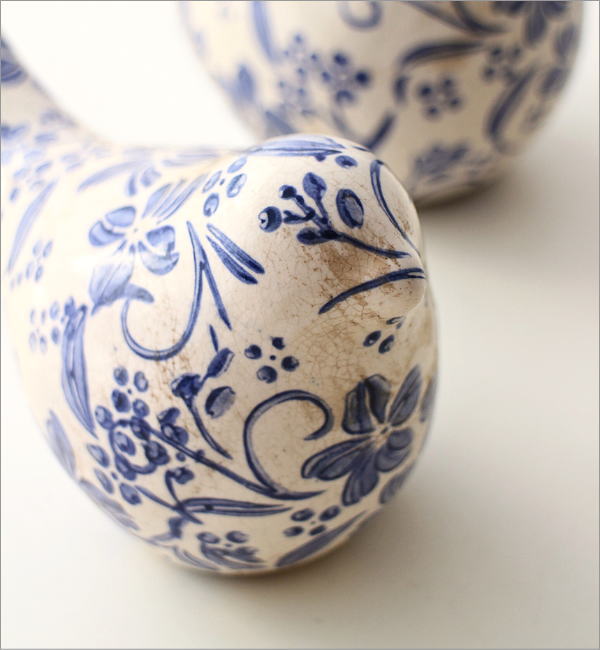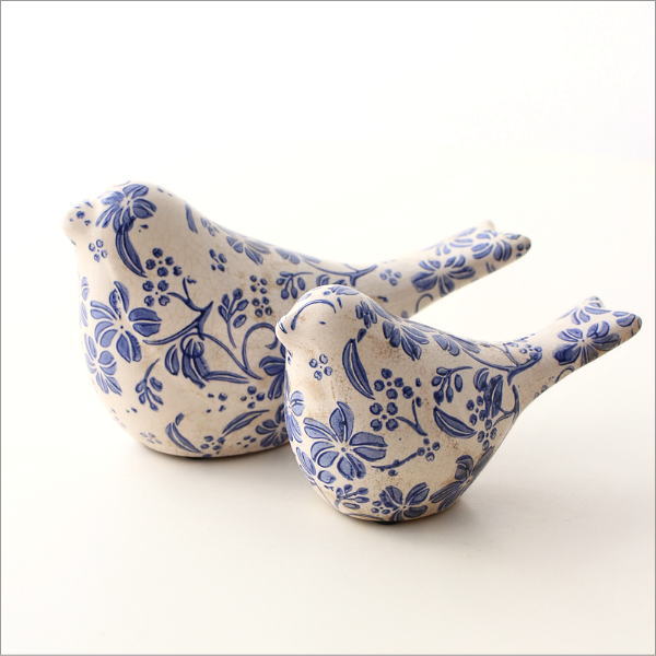 陶器製のバードのオブジェ 大小2個セットは
