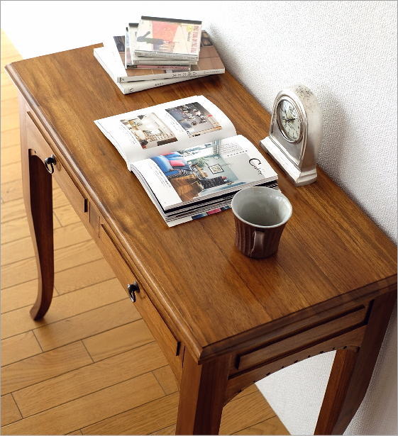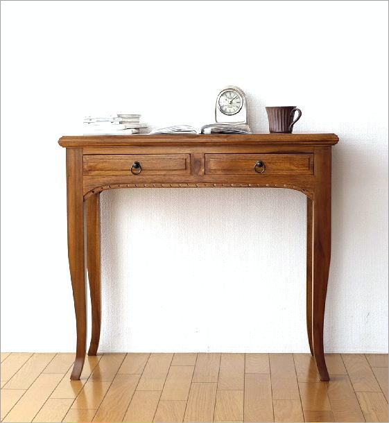 インドネシアの高級材料チーク材で作られたアジアン&アンティーク風デザインのコンソールデスク