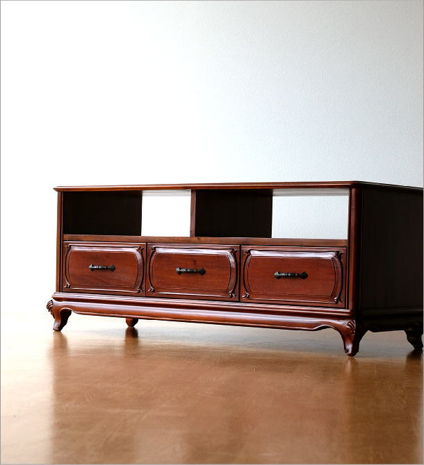 幅118、奥行45、アンティーク調のマホガニーテレビ台