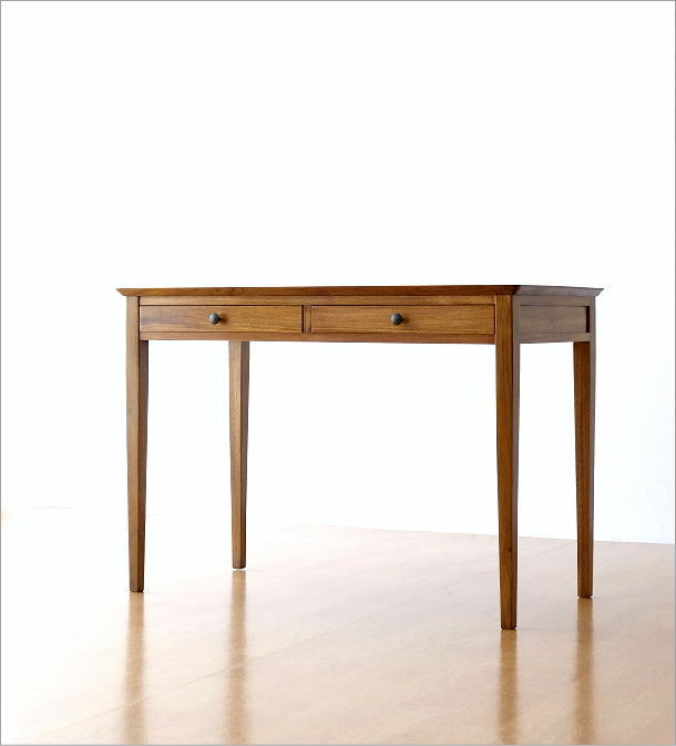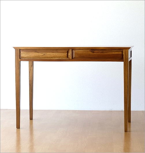 幅100、奥行50、シンプルフェイスのチーク無垢材デスク