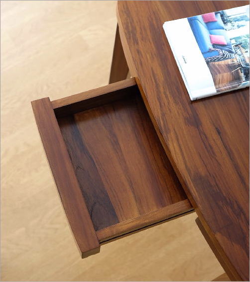 チーク100%無垢材の引き出し付きデスクは