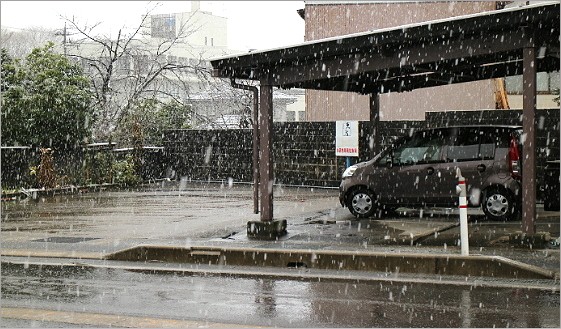 日中でもちょっと薄暗くなり、お昼頃に雪になりました