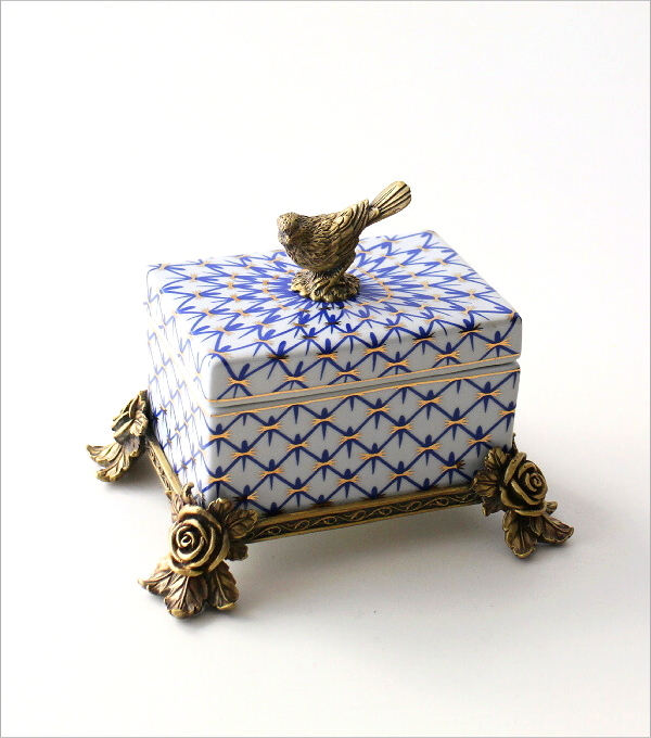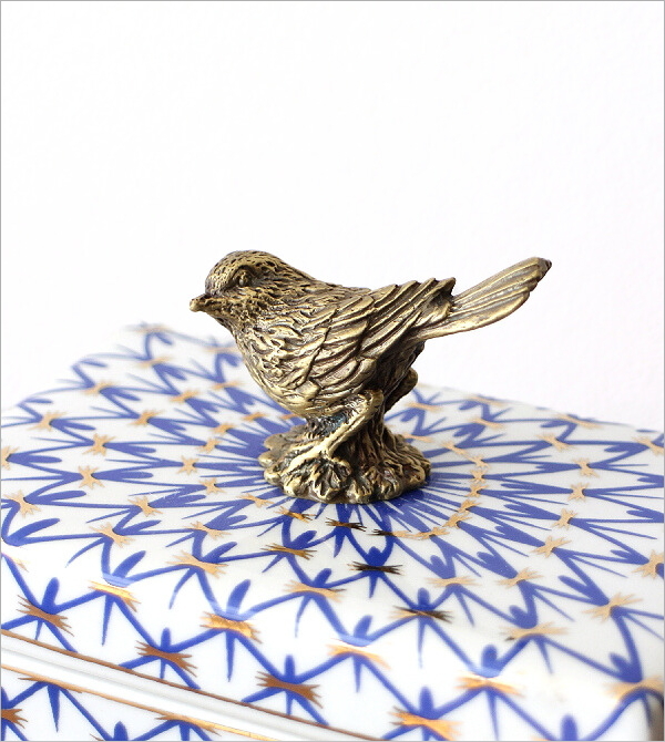 商品名 : シノワズリ 陶器の小物入れ 網目バード